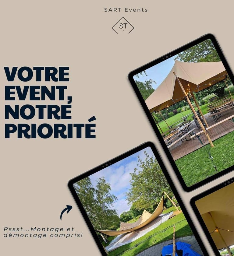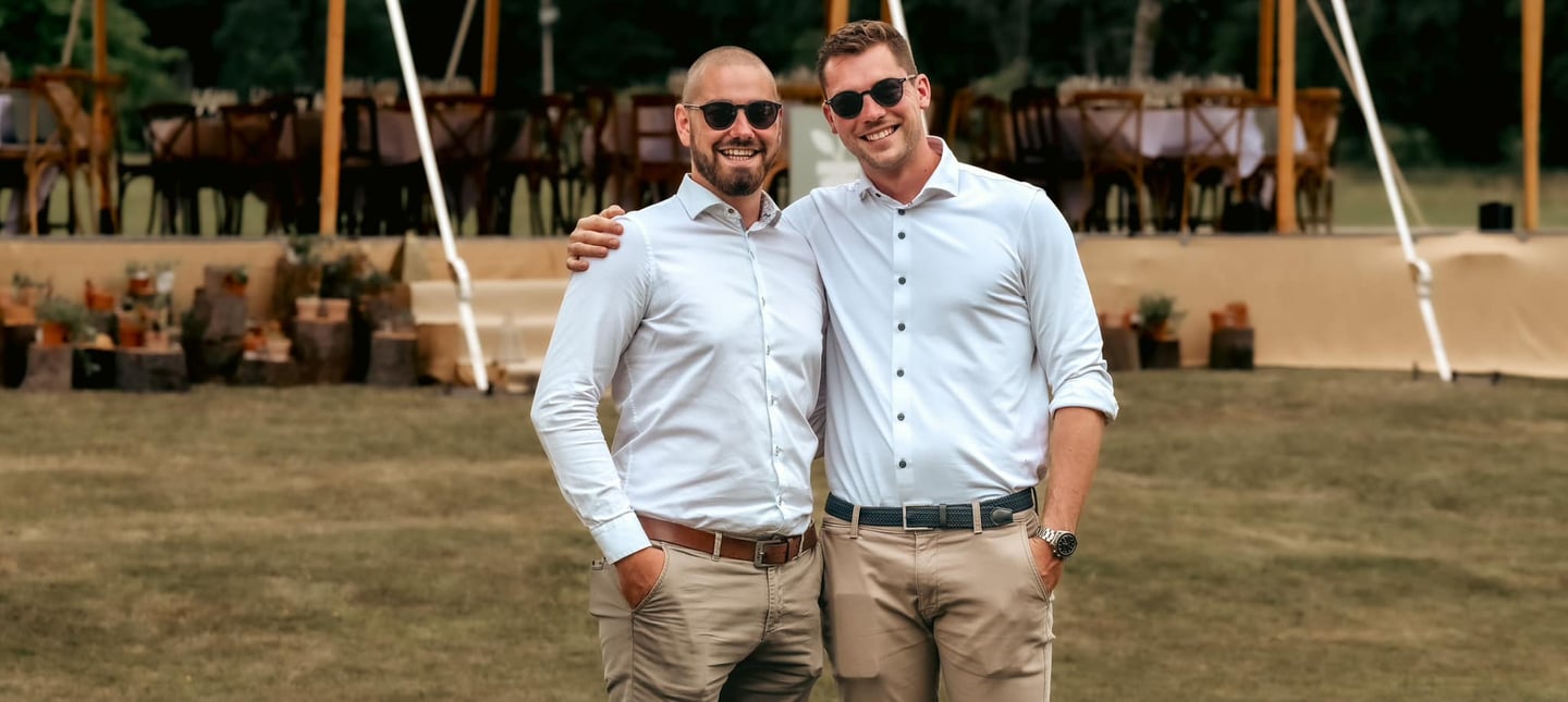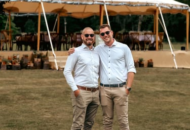 Thibault et Simon, c'est la team derrière Sart Events ! Deux amis de longue date qui ont eu l'idée de se lancer ensemble dans cette aventure lors d'un mariage. En se retrouvant sous une tente, ils ont décidé qu'ils allaient transformer vos événements en véritables réussites. Leur amitié et leur complémentarité, c’est ce qui fait toute la force de Sart Events !